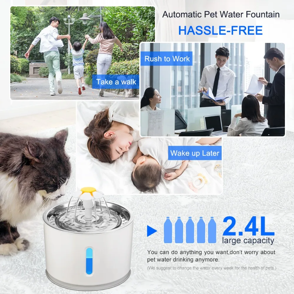 Não há necessidade de reabastecer água com frequência e pode atender às s necessidades de consumo de gatos, cães, pássaros e outros animais de estimativa de vários tamanhos. Não precisa se preocupar com o fato de seus animais de estimativa não beber bastante quando você trabalhar.