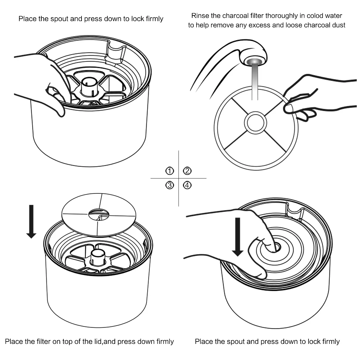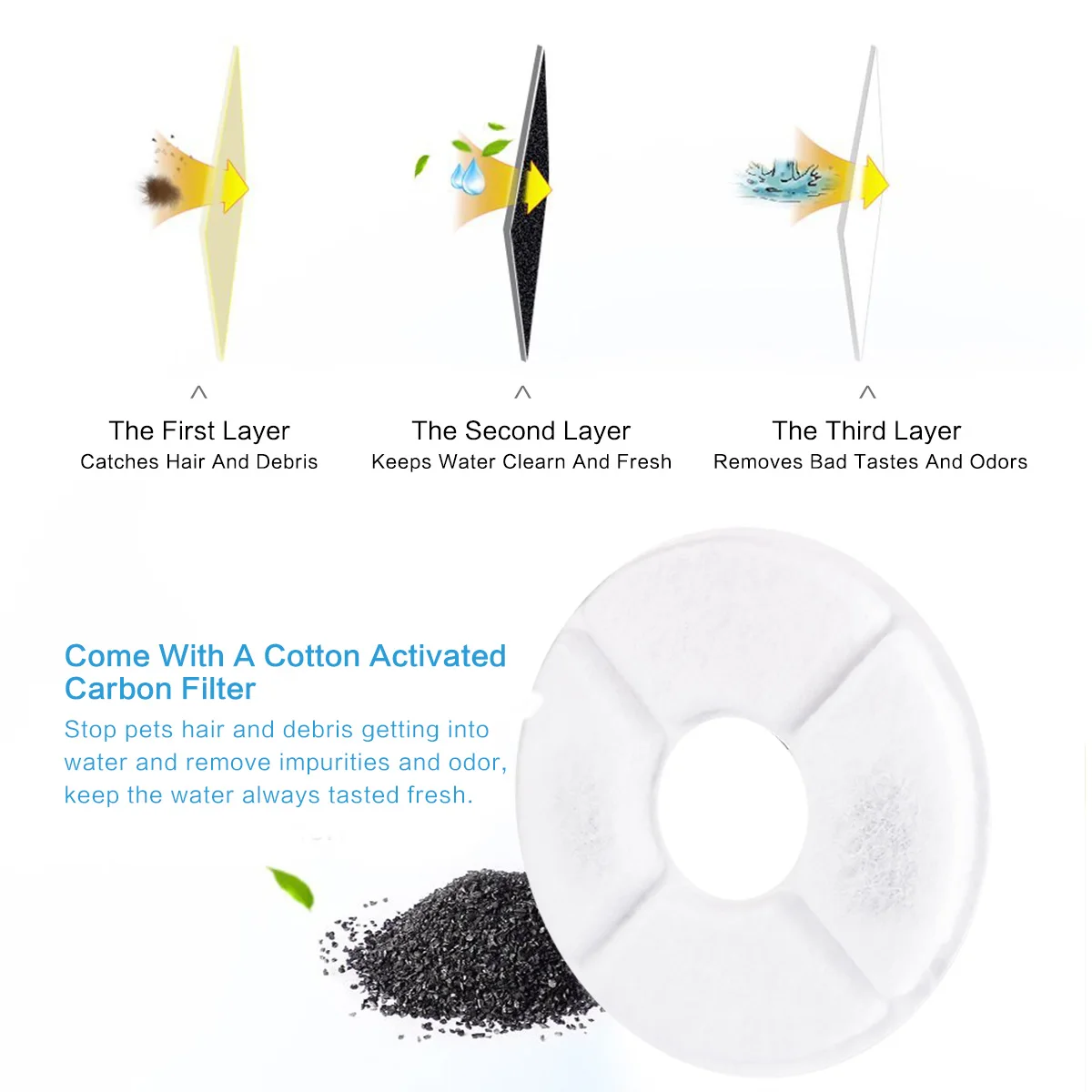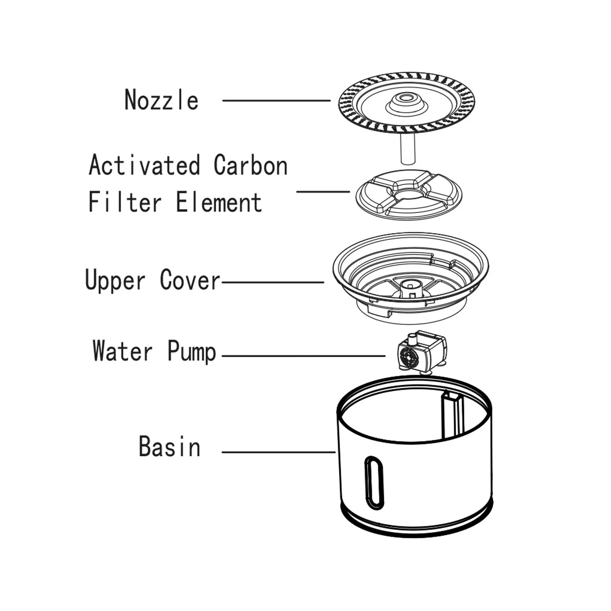 O projeto do filtro substituível exclusivamente pode ser eficaz filtrar incrustações, cabelos, odor, sedimentos e cloro no sistema de purificação de 5 camas. Consequentemente, a fonte pode fornecer água mais limpa aos animais de estimativa e fazer o risco de desenvolvimento das dores. O filtro de carbono ajuda a removedor o que absorve odores e intrínsecos.